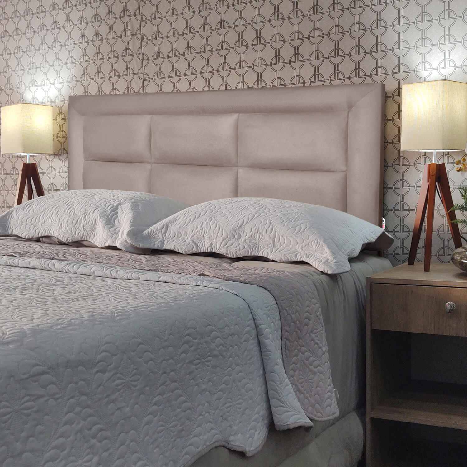 - Os objetos que ambientam as fotos não acompanham a cabeceira.