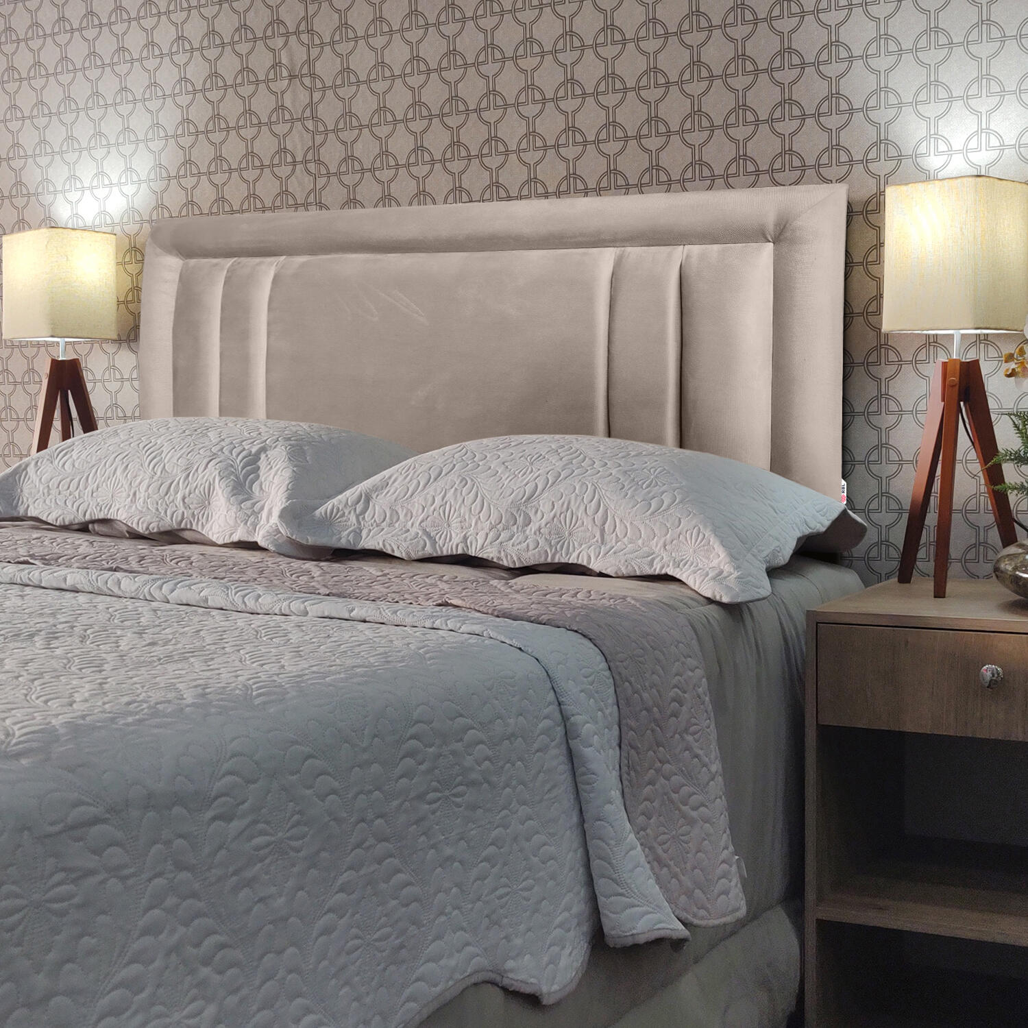 - Os objetos que ambientam as fotos não acompanham a cabeceira.