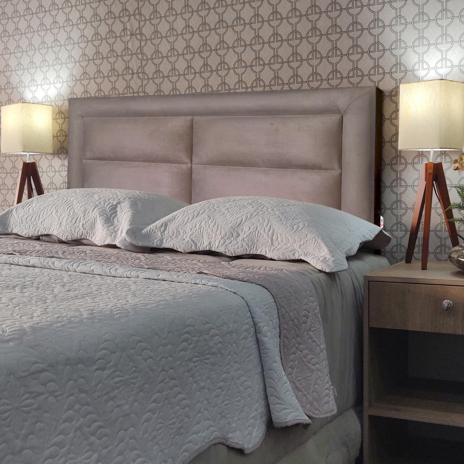 - Os objetos que ambientam as fotos não acompanham a cabeceira.
